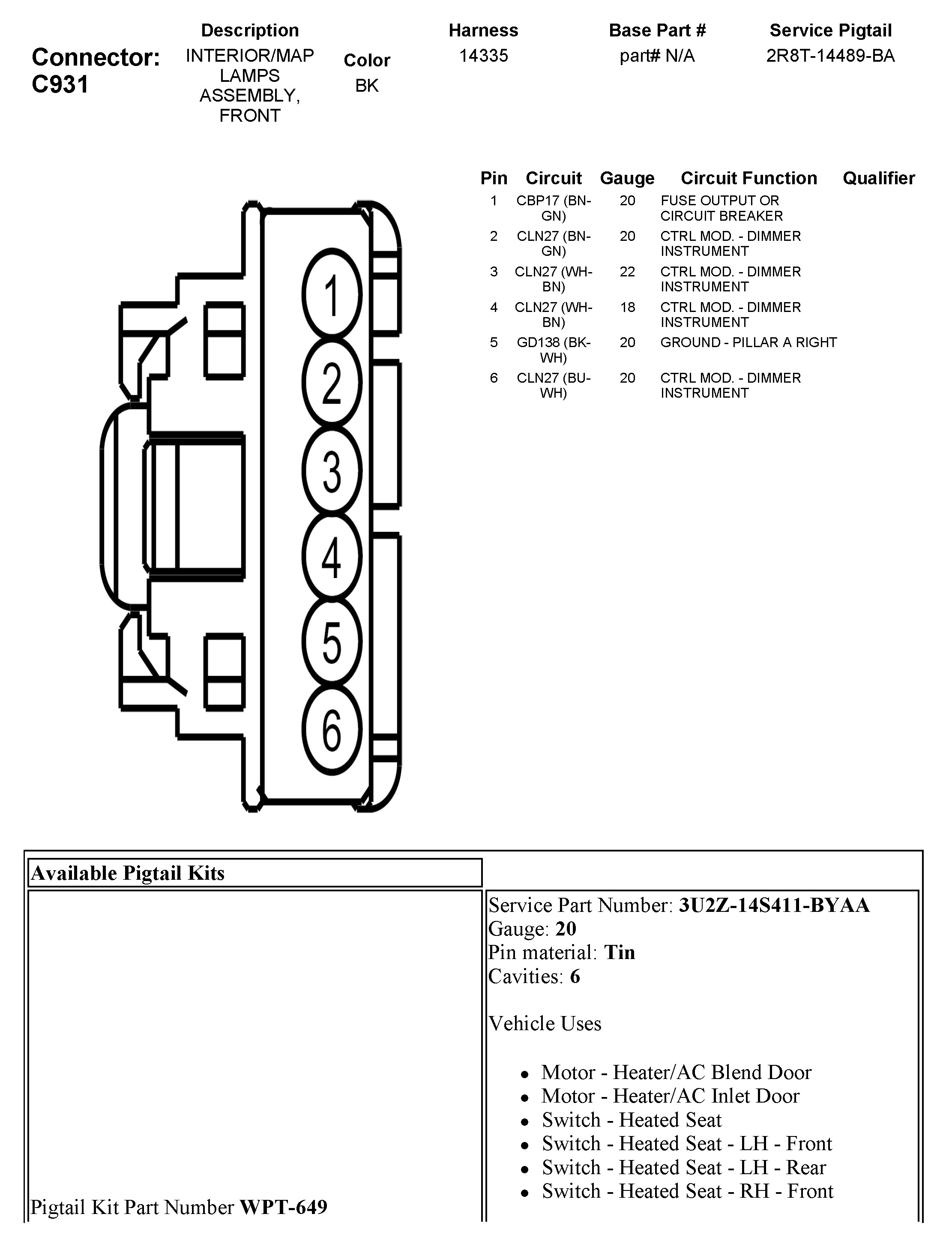 C931 Interior/Map Lamps Assembly, Front