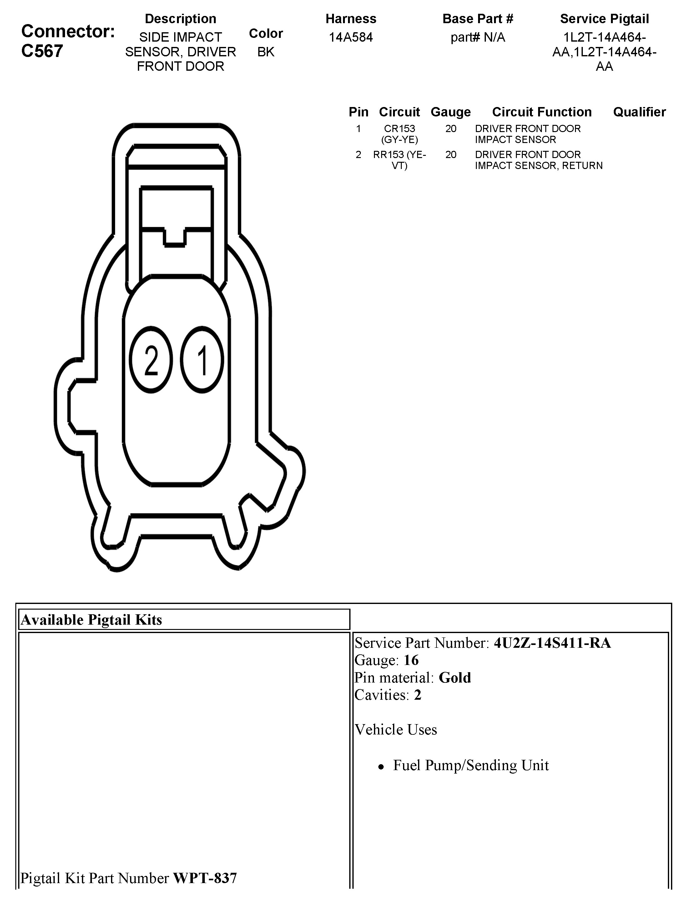 C567 Side Impact Sensor, Driver Front Door