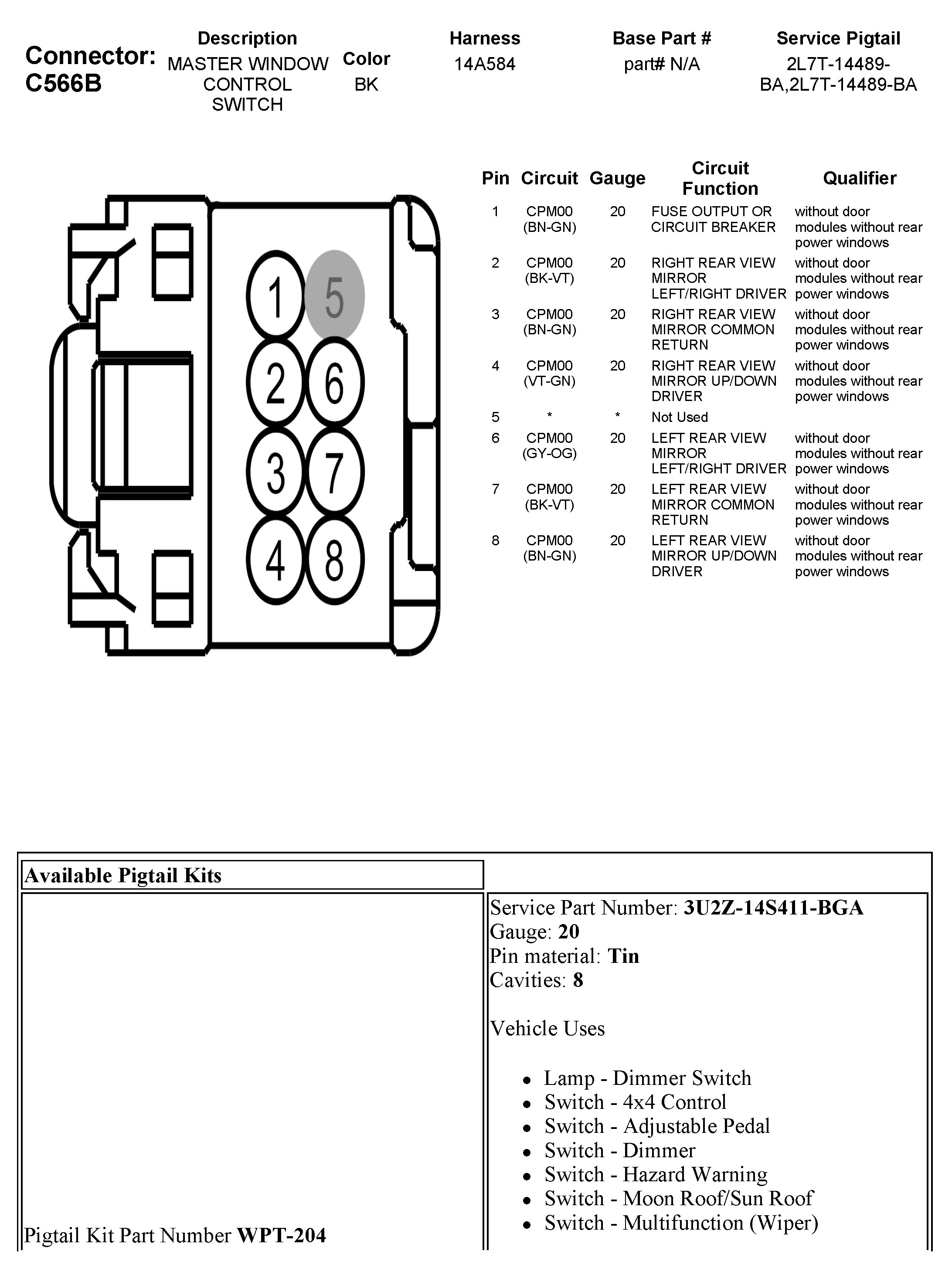 C566B Master Window Control Switch