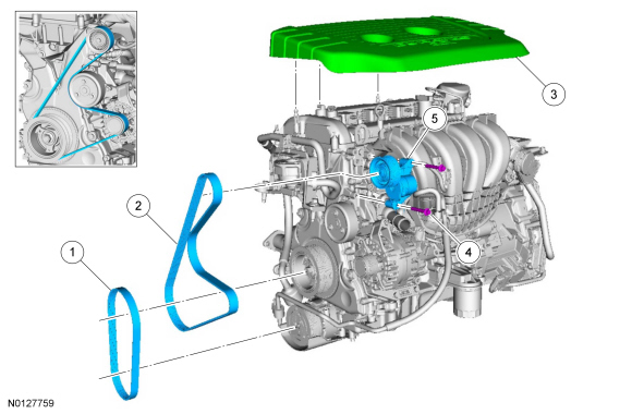 NOTE: The A/C drive belt procedure must be preformed before removing the Accessory drive belt. REFER to Air Conditioning (AC) Compressor Belt - 2.0L GDI .