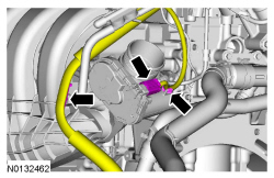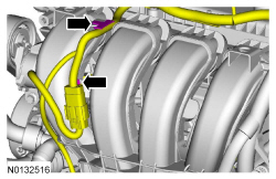 - Attach the wiring harness pin-type retainer to the lower LH (Left Hand) side of the intake manifold.