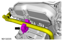 6. Install the A/C (Air Conditioning) line retainer onto the engine mount and position the A/C (Air Conditioning) line in the retainer.