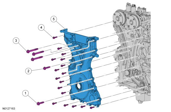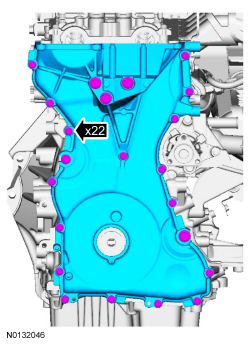 4. Position the engine front cover and tighten the 22 engine front cover bolts in the sequence shown.