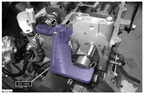 9. NOTICE: The 303-1565 is for camshaft alignment only. Using this tool to prevent engine rotation can result in engine damage.