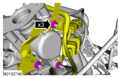 12. Position the 2 engine wiring support brackets and install the 3 nuts.