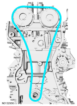 1. Install the timing chain onto the 2 camshaft phaser and sprockets and the crankshaft sprocket.