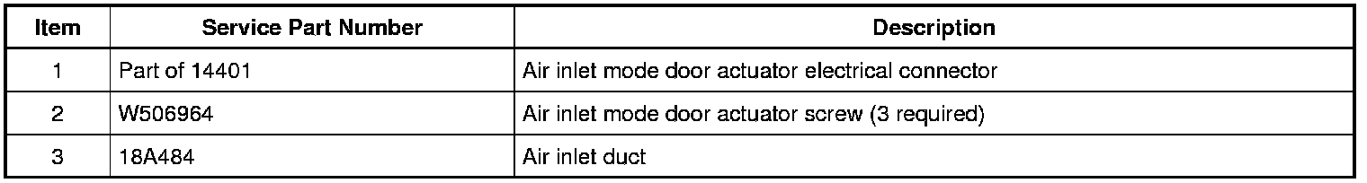 2. Disconnect the air inlet mode door actuator electrical connector, remove the 3 air inlet duct screws and remove the air inlet duct.