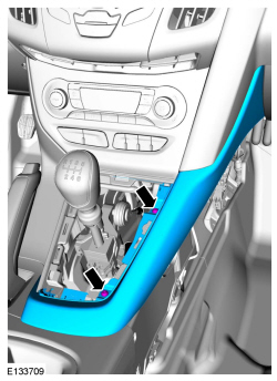 4. Remove the LH (Left Hand) floor console side trim panel retainer and remove the LH (Left Hand) floor console side trim panel.