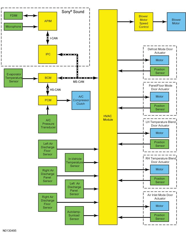 When an airflow mode, desired driver or passenger temperature or fresh air or recirculation mode is selected the HVAC (Heating, Ventilation, and Air Conditioning) module drives the actuator motor in the direction necessary to make the actuator position agree with the expected HVAC (Heating, Ventilation, and Air Conditioning) module position to be obtained.