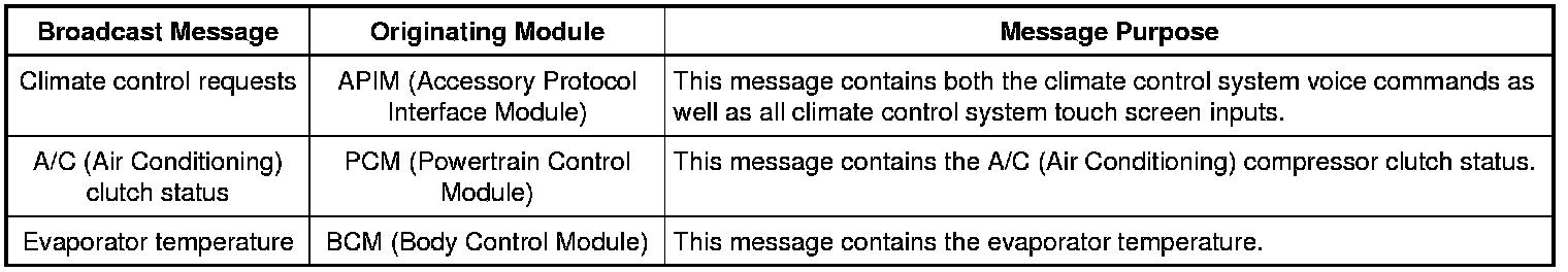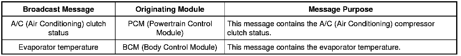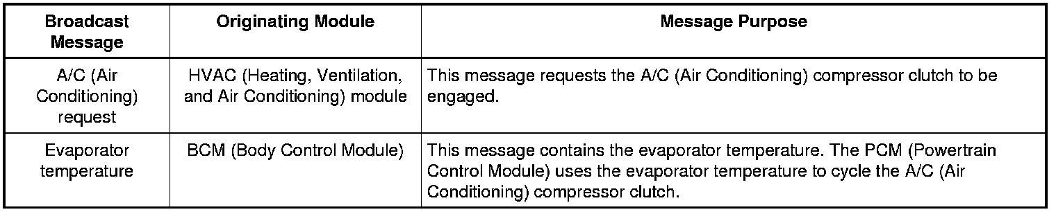 When the A/C (Air Conditioning) is requested, the HVAC (Heating, Ventilation, and Air Conditioning) module sends the message over the MS-CAN (Medium Speed Controller Area Network) to the BCM (Body Control Module). The BCM (Body Control Module) then forwards the message to the PCM (Powertrain Control Module) module over the HS-CAN (High Speed Controller Area Network).