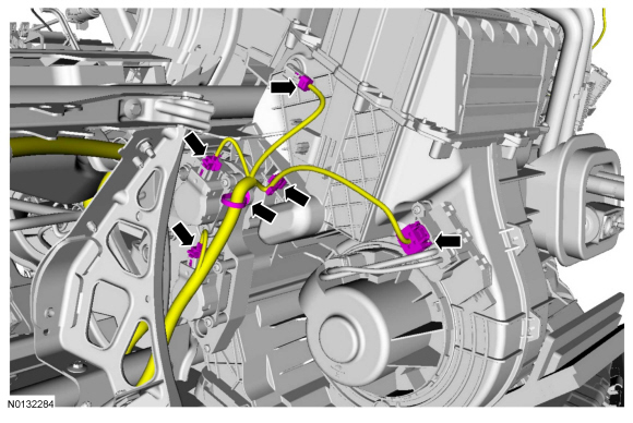 3. Detach the 2 wire harness retainers and disconnect the 3 electrical connectors.