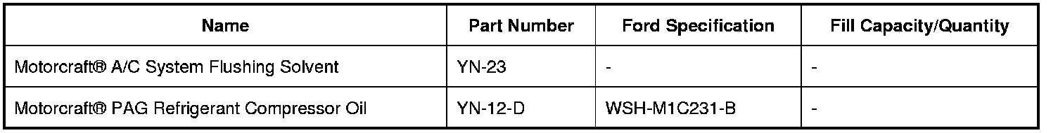 NOTICE: Only the listed A/C (Air Conditioning) Flush and Purge Machine, A/C (Air Conditioning) Flush and Purge Fitting Kit, A/C (Air Conditioning) Flush Adapter Kit and Motorcraft(R) A/C System Flushing Solvent are approved for use on Ford vehicles. No other flushing device or solvent is approved for flushing heat exchangers (A/C (Air Conditioning) condenser, A/C (Air Conditioning) evaporator). Use of any other flusher or solvent may cause damage to the A/C (Air Conditioning) system and the flushing unit.