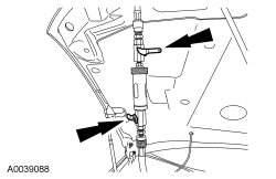4. NOTICE: Make sure all tools and hoses are clear of the engine cooling fan and drive belt before starting the engine. Failure to keep tools and hoses clear from the engine cooling fan and drive belt will result in damage to the tools and/or vehicle.