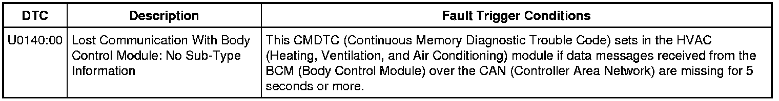 2. Check for recorded DTCs (Diagnostic Trouble Codes) from the HVAC (Heating, Ventilation, and Air Conditioning) module self-test.
