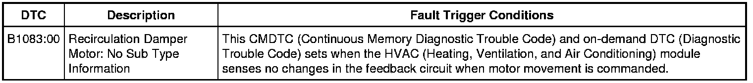 During an actuator calibration cycle, the HVAC (Heating, Ventilation, and Air Conditioning) module drives the air inlet mode door until the door reaches both internal stops in the HVAC (Heating, Ventilation, and Air Conditioning) case. If the air inlet mode door is temporarily obstructed or binding during a calibration cycle, the HVAC (Heating, Ventilation, and Air Conditioning) module may interpret this as the actual end of travel for the door. When this condition occurs and the HVAC (Heating, Ventilation, and Air Conditioning) module commands the actuator to its end of travel, the air intake may not be from the expected source.