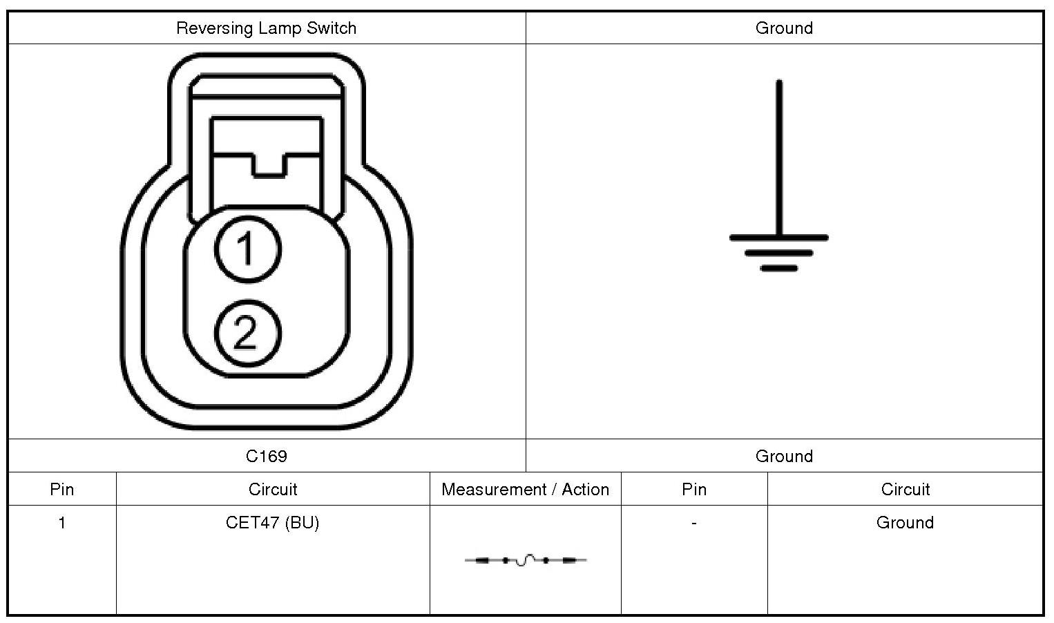 3. CHECK THE REVERSING LAMP SWITCH GROUND CIRCUIT FOR AN OPEN