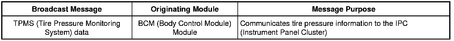 BCM (Body Control Module) \ TPMS (Tire Pressure Monitoring System) Network Input Messages