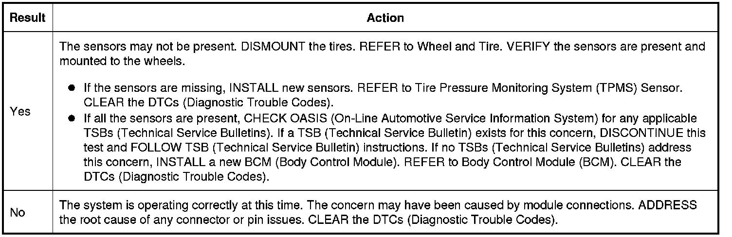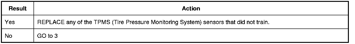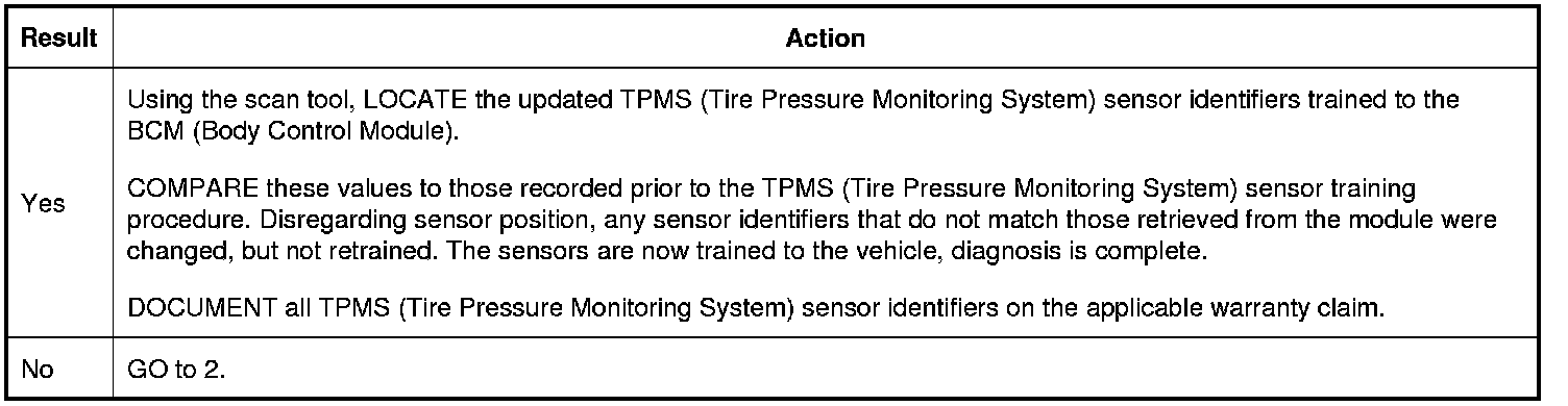 Did all of the TPMS (Tire Pressure Monitoring System) sensors train successfully and did the horn sound when each TPMS (Tire Pressure Monitoring System) sensor transmitted to the BCM (Body Control Module)?