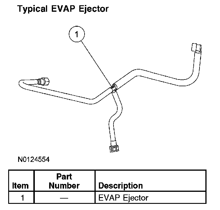 The EVAP ejector is used on turbocharged engines to create a vacuum in the EVAP purge line from the EVAP purge valve to the intake air system. During boost conditions, boost pressure flows through a venturi inside the EVAP ejector creating a vacuum in the EVAP purge line to the intake air inlet to the turbocharger. When the second EVAP check valve is open, the purge vapor is drawn through the EVAP ejector into the intake air tube, through the turbocharger and charge air cooler, to the intake manifold.