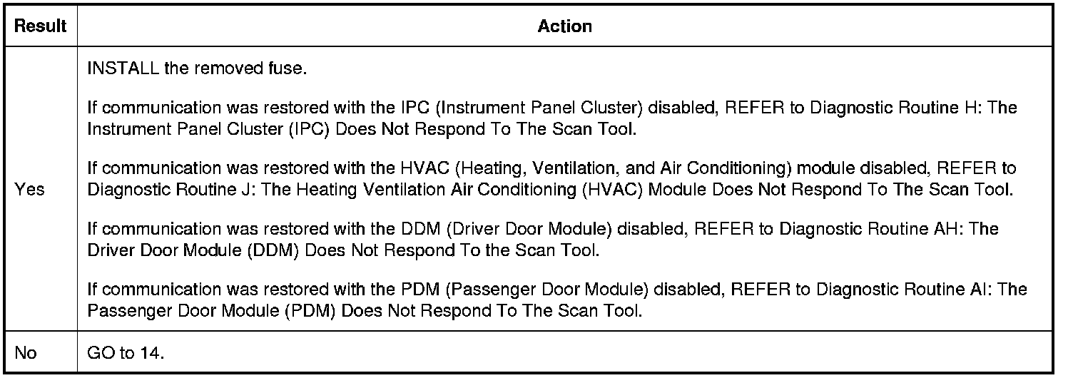 13. CHECK FOR RESTORED NETWORK COMMUNICATION WITH THE IPC (Instrument Panel Cluster), HVAC (Heating, Ventilation, and Air Conditioning) MODULE, DDM (Driver Door Module), AND THE PDM (Passenger Door Module) DISABLED