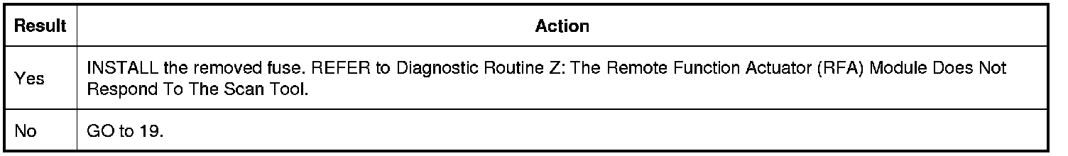 18. CHECK FOR RESTORED NETWORK COMMUNICATION WITH THE RFA (Remote Function Actuator) MODULE DISABLED