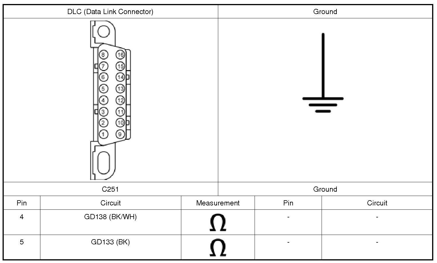 3. Inspect DLC (Data Link Connector) pins 4, 5 and 16 for damage.