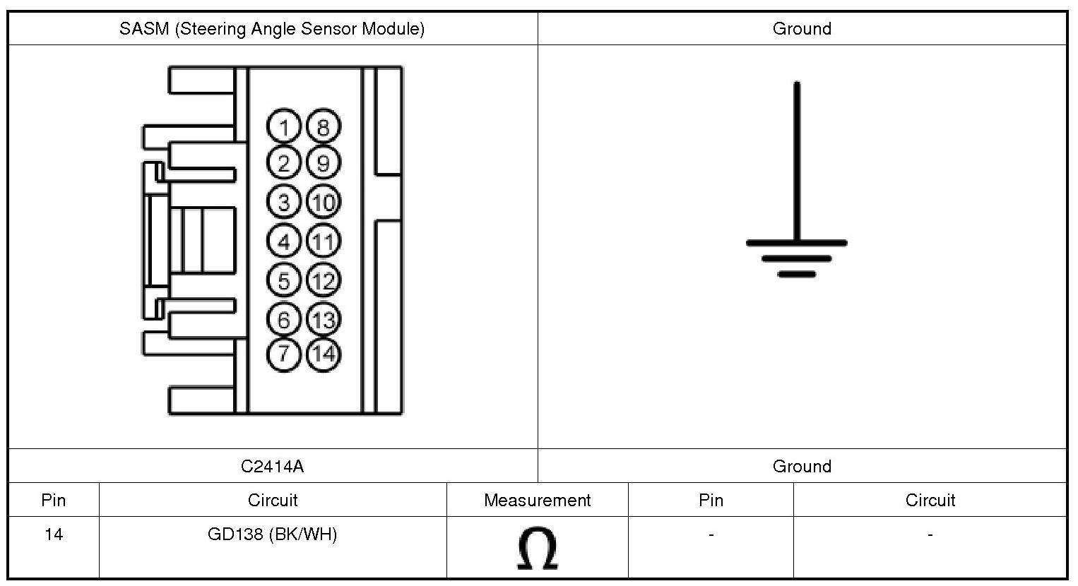 2. CHECK THE SASM (Steering Angle Sensor Module) GROUND CIRCUIT FOR AN OPEN