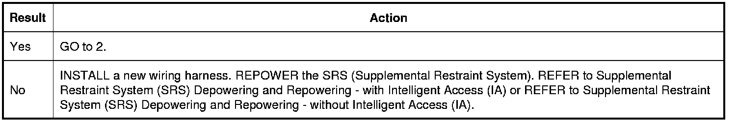 5. Repower the SRS (Supplemental Restraint System). REFER to Supplemental Restraint System (SRS) Depowering and Repowering - with Intelligent Access (IA) or Supplemental Restraint System (SRS) Depowering and Repowering - without Intelligent Access (IA) . Service and Repair
