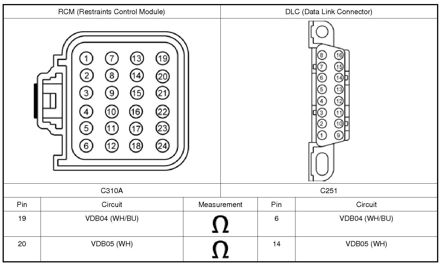 Are RCM (Restraints Control Module) C310A pin 19, 20 and 24 OK?