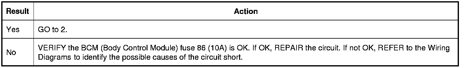 Verify BCM (Body Control Module) fuse 86 (10A) is OK.