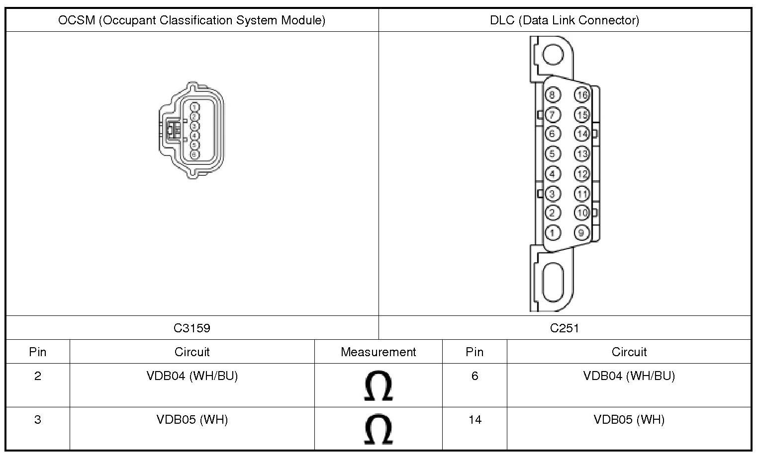 3. CHECK THE HS-CAN (High Speed Controller Area Network) CIRCUITS BETWEEN THE OCSM (Occupant Classification System Module) AND THE DLC (Data Link Connector) FOR AN OPEN