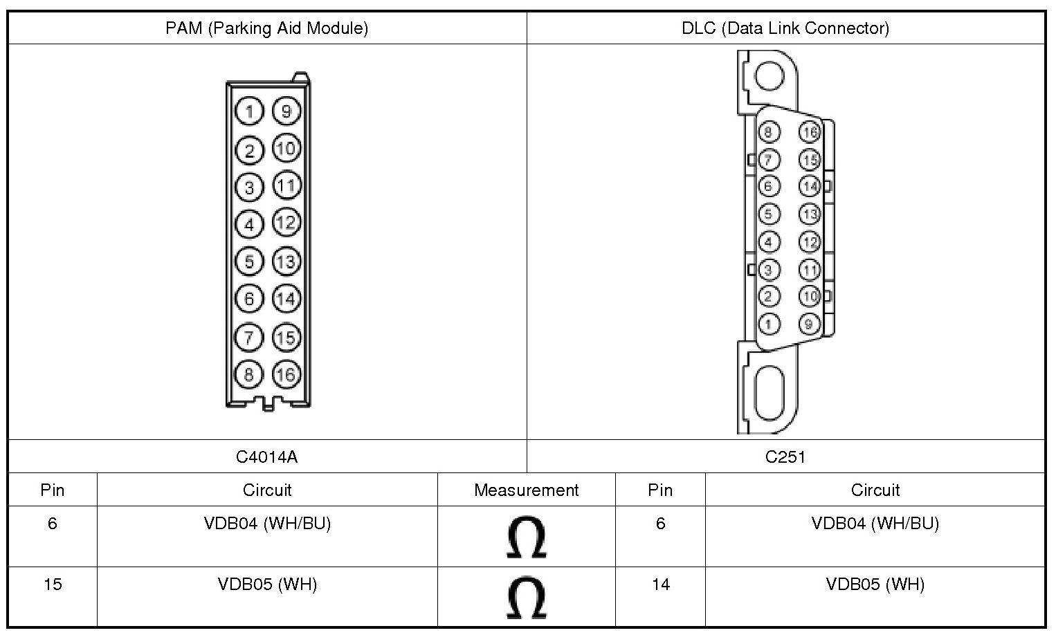 3. CHECK THE HS-CAN (High Speed Controller Area Network) CIRCUITS BETWEEN THE PAM (Parking Aid Module) AND THE DLC (Data Link Connector) FOR AN OPEN