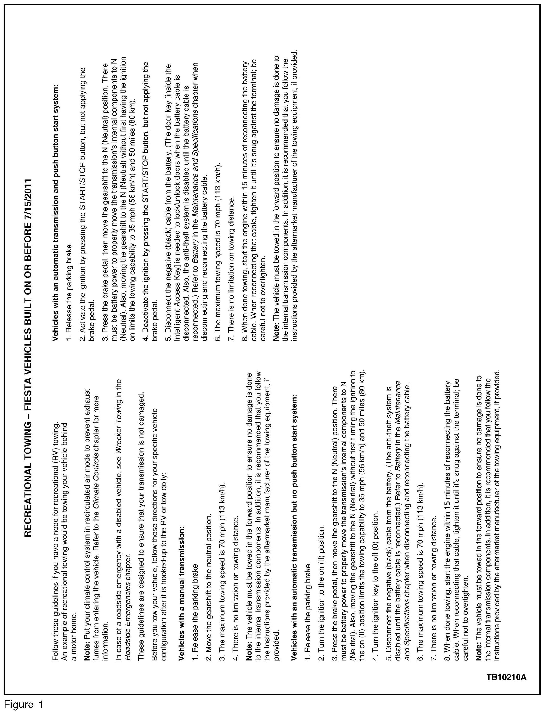 Some 2011 Fiesta and 2012 Focus vehicles built on or before 7/15/2011 and equipped with an automatic transmission may experience transmission concerns if the vehicle is towed with all four (4) wheels on the ground or flat towing.