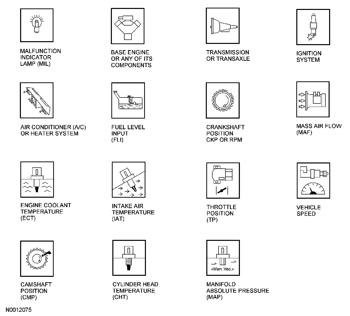 These icons are used in the illustrations of the OBD monitors and throughout this system.