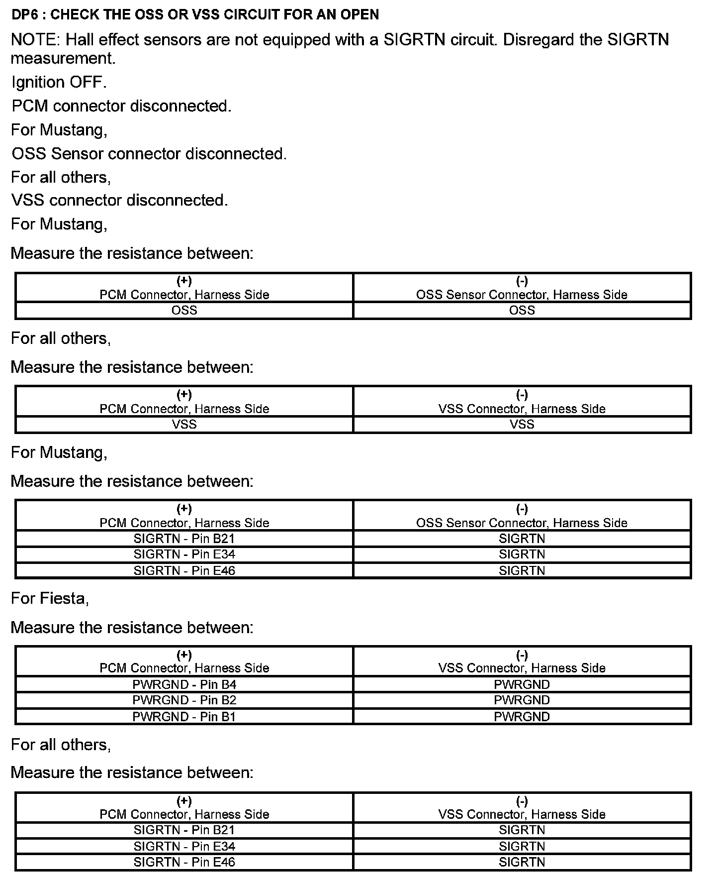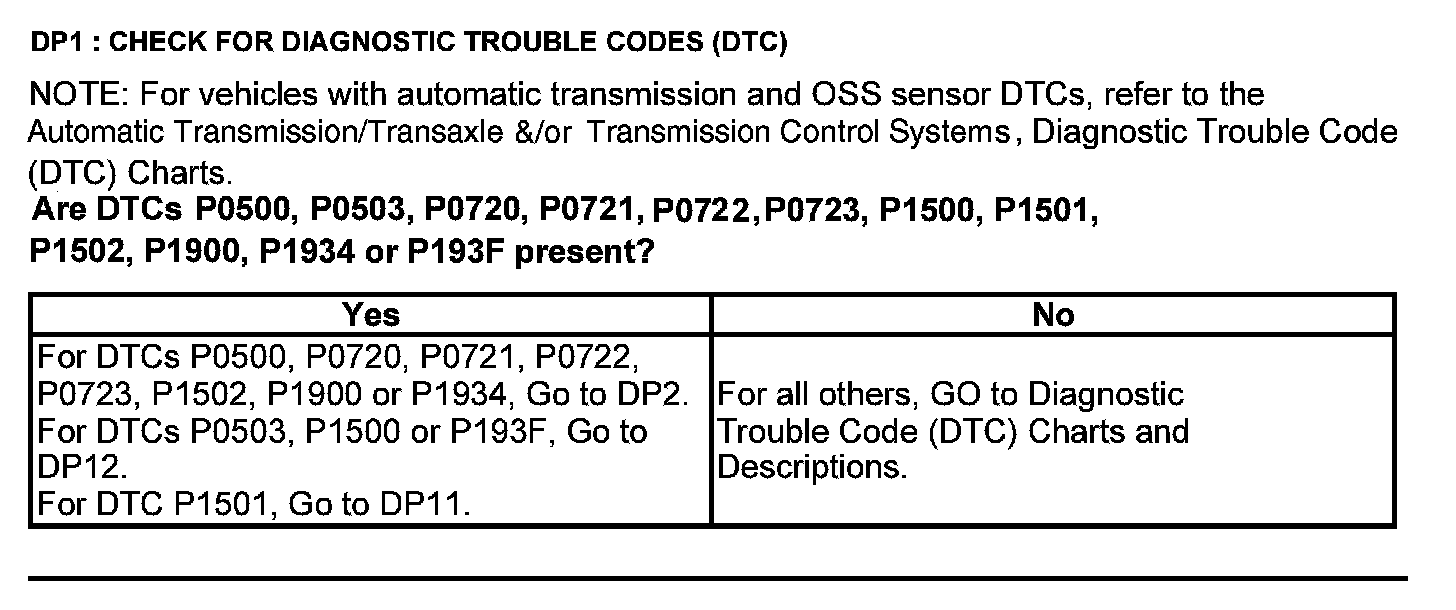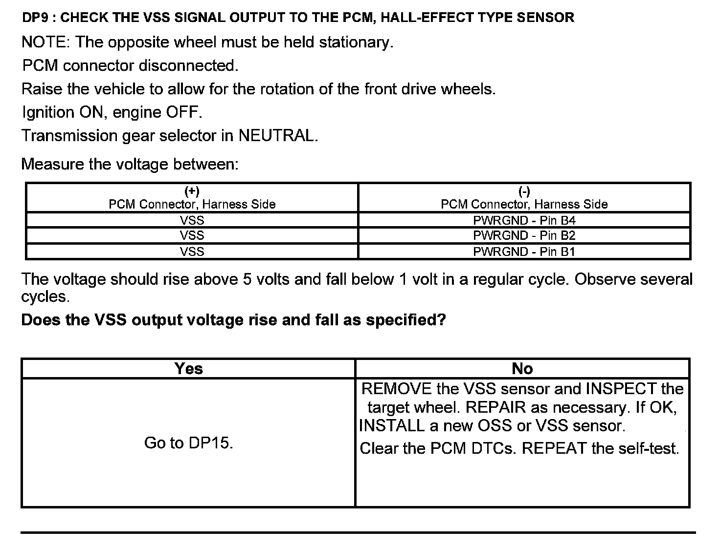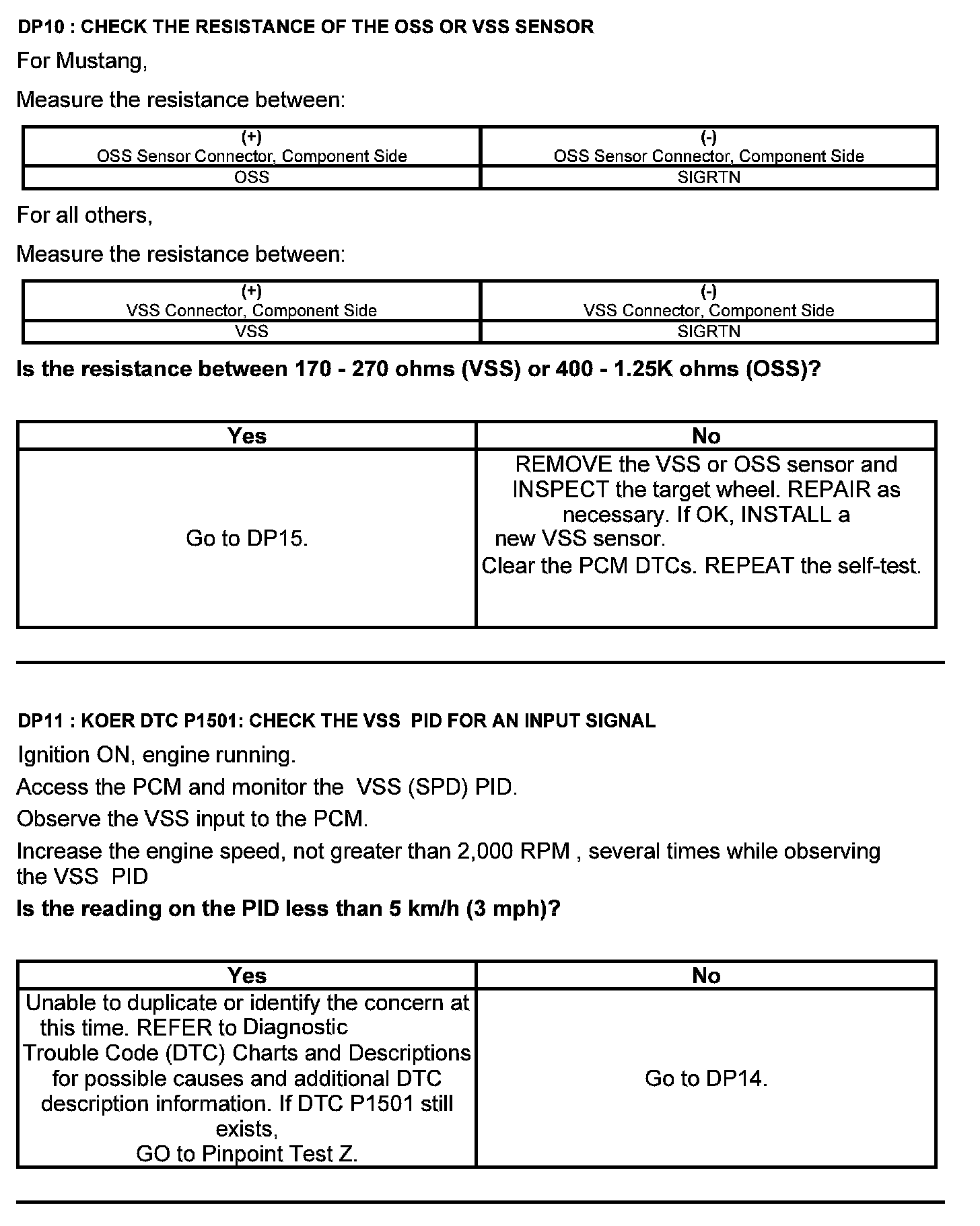 Test DP: Output Shaft Speed (OSS) Sensor/Vehicle Speed Sensor ( VSS)