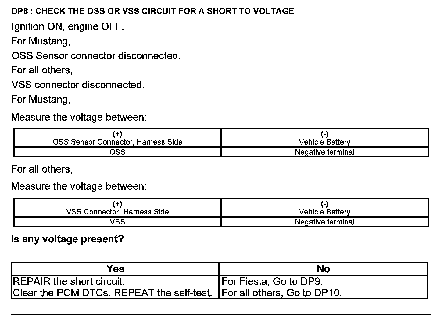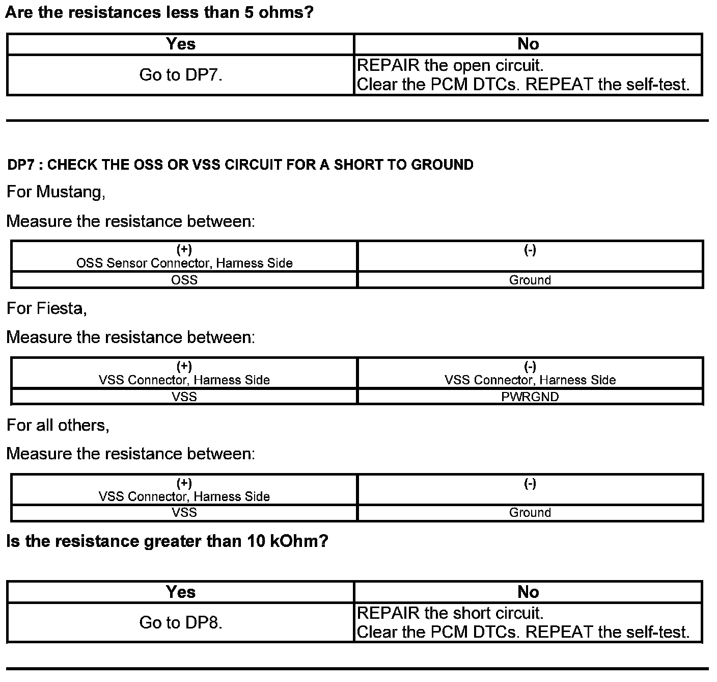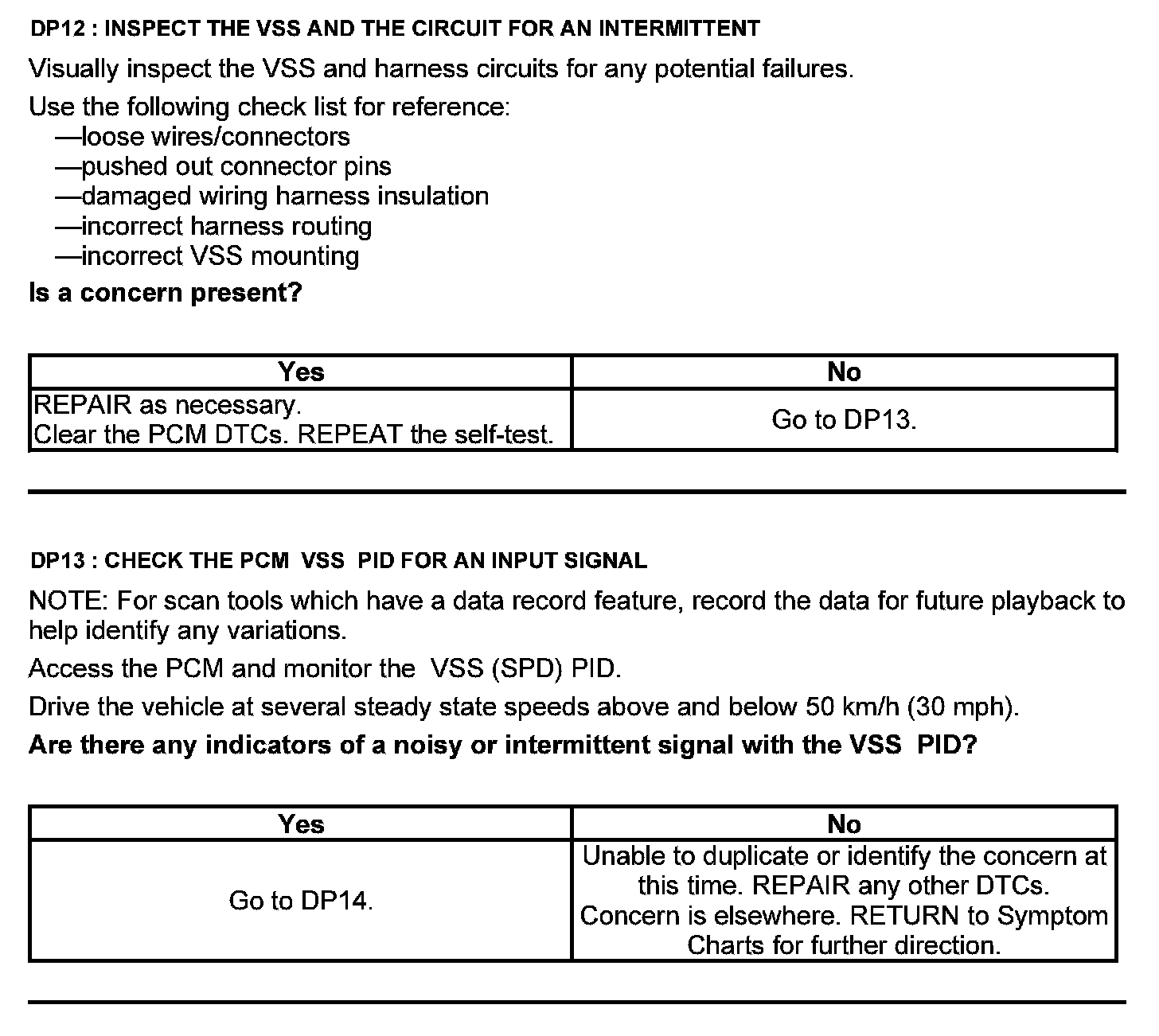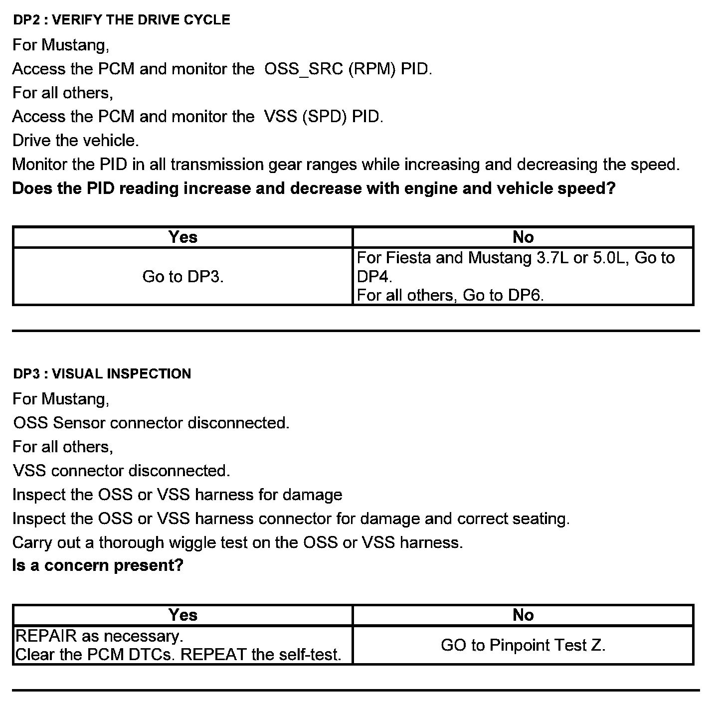 Test DP: Output Shaft Speed (OSS) Sensor/Vehicle Speed Sensor ( VSS)