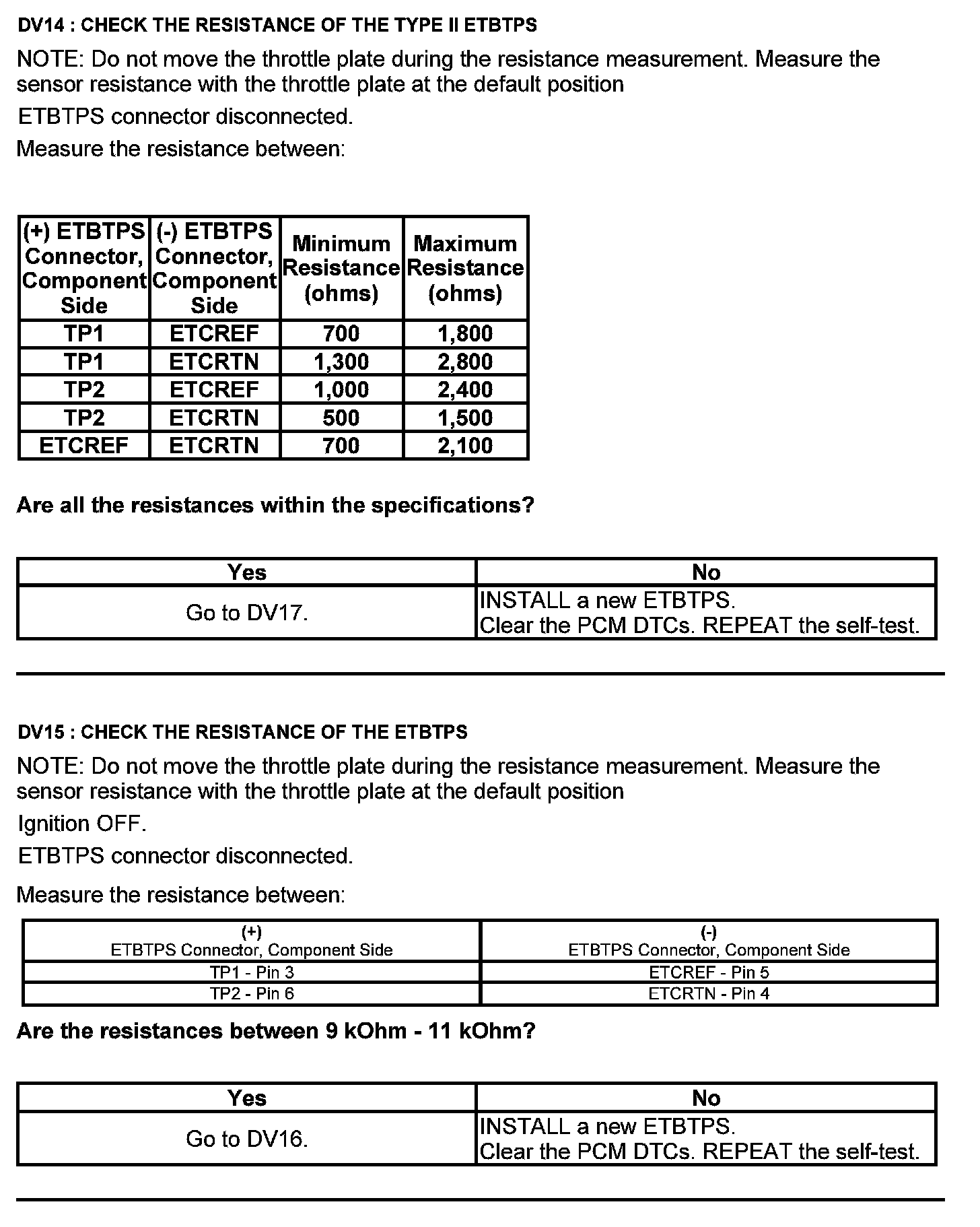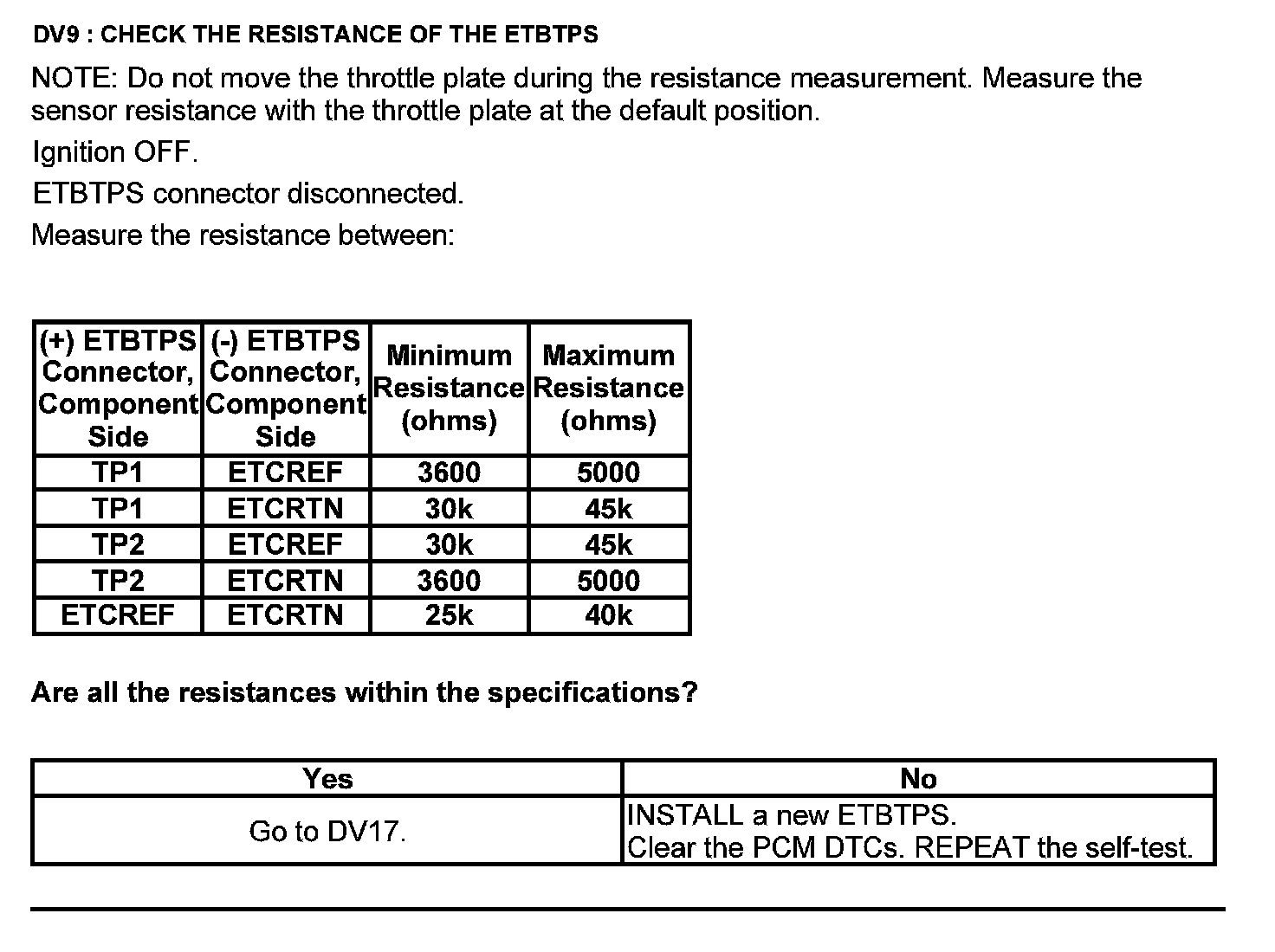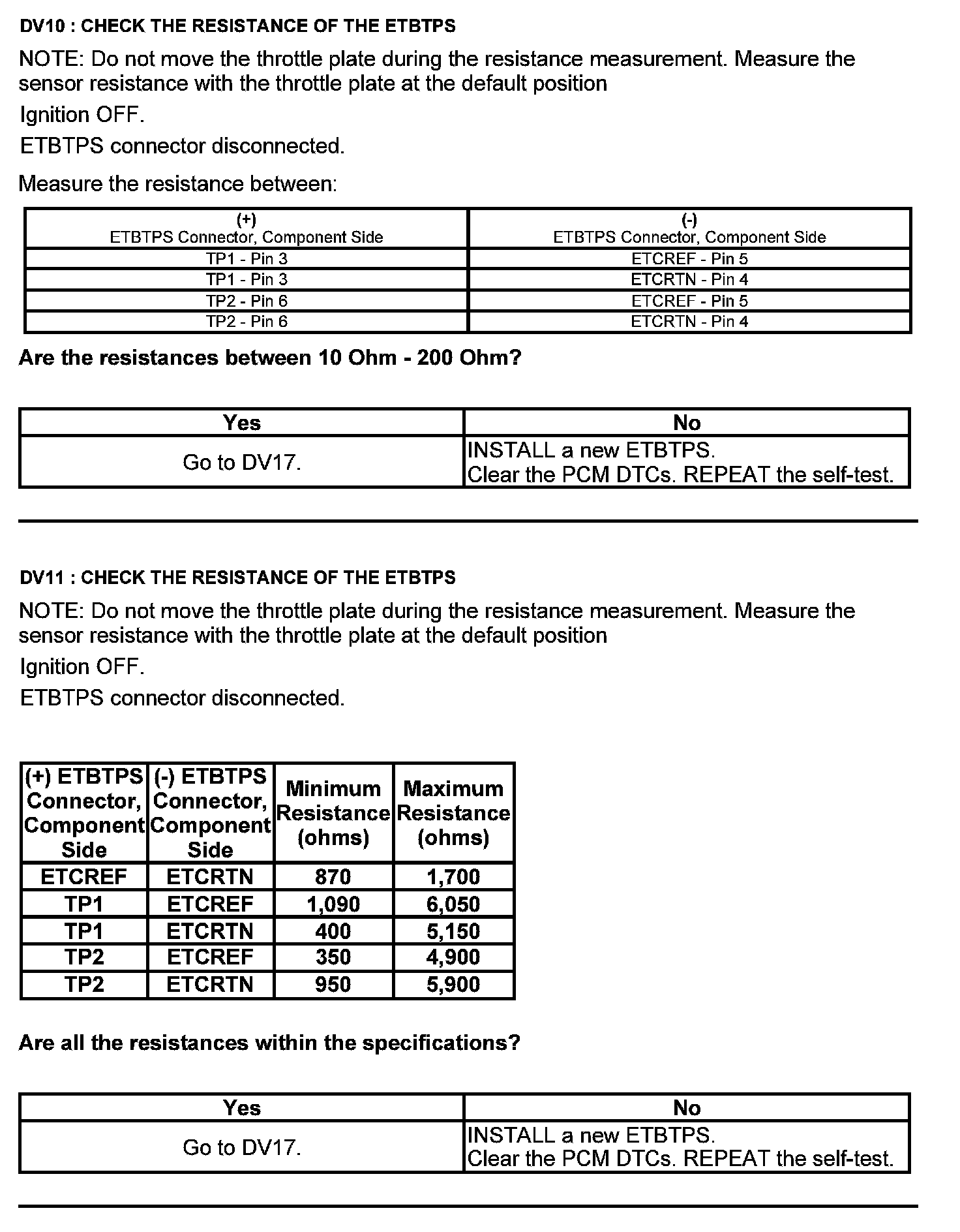 Test DV: Throttle Body Assembly Electronic Throttle Control (ETC)