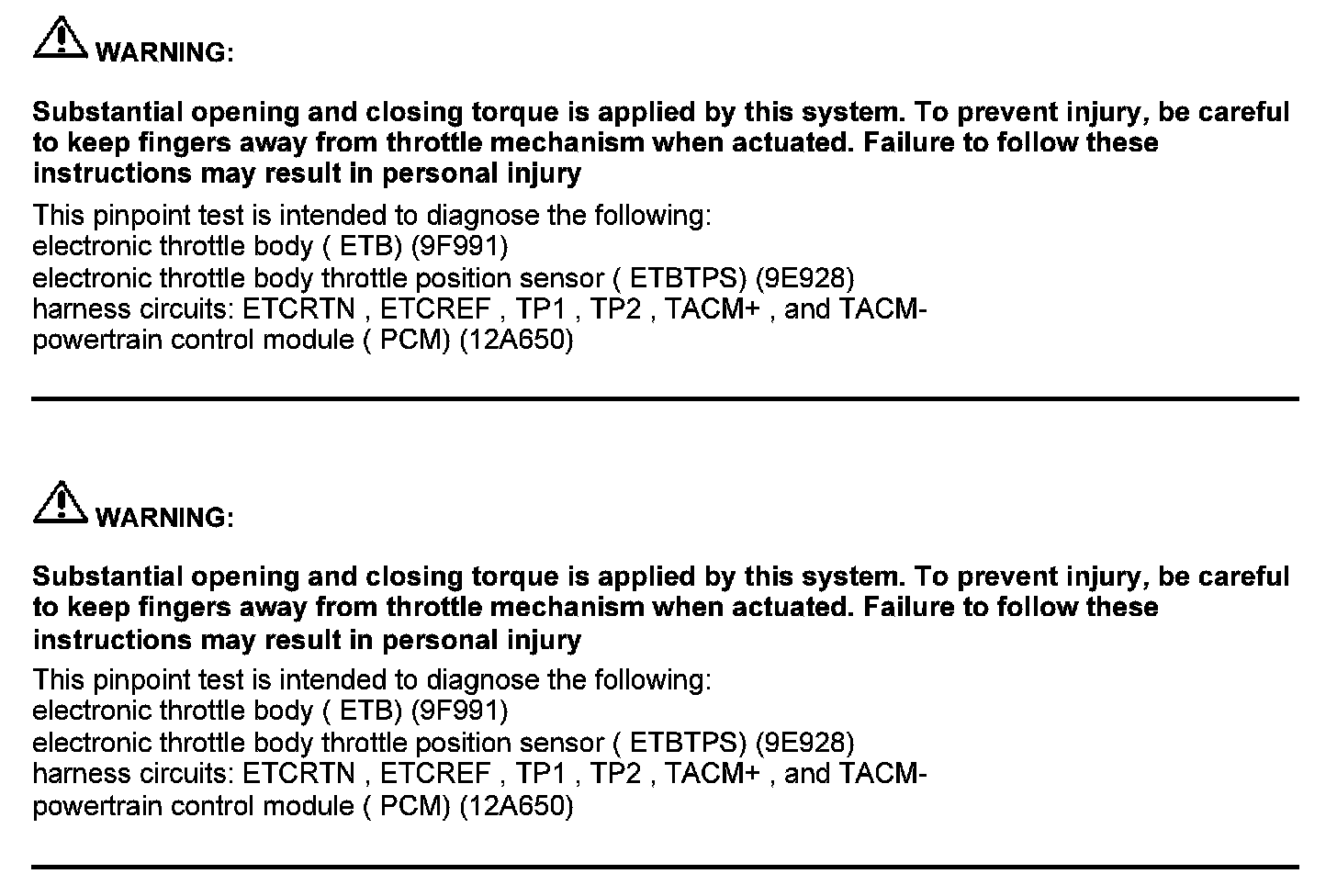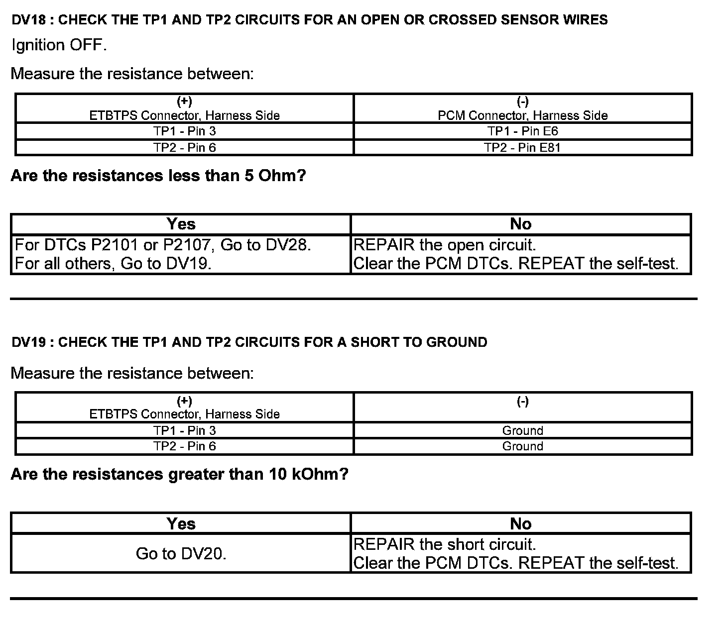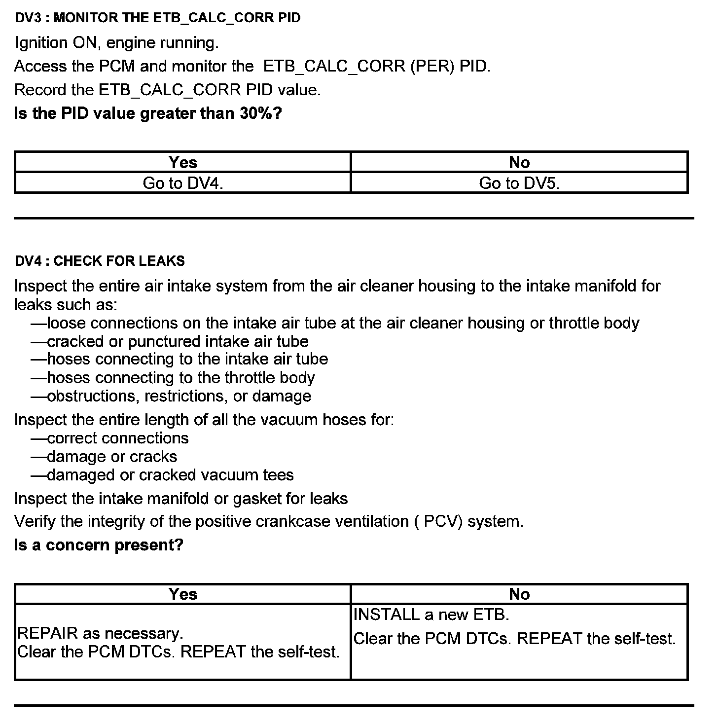 Test DV: Throttle Body Assembly Electronic Throttle Control (ETC)