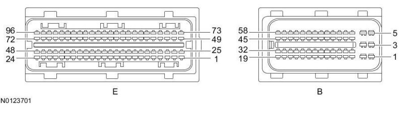 Powertrain Control Module (PCM) Connector - For PCM connector views or reference values, refer to Reference Values.