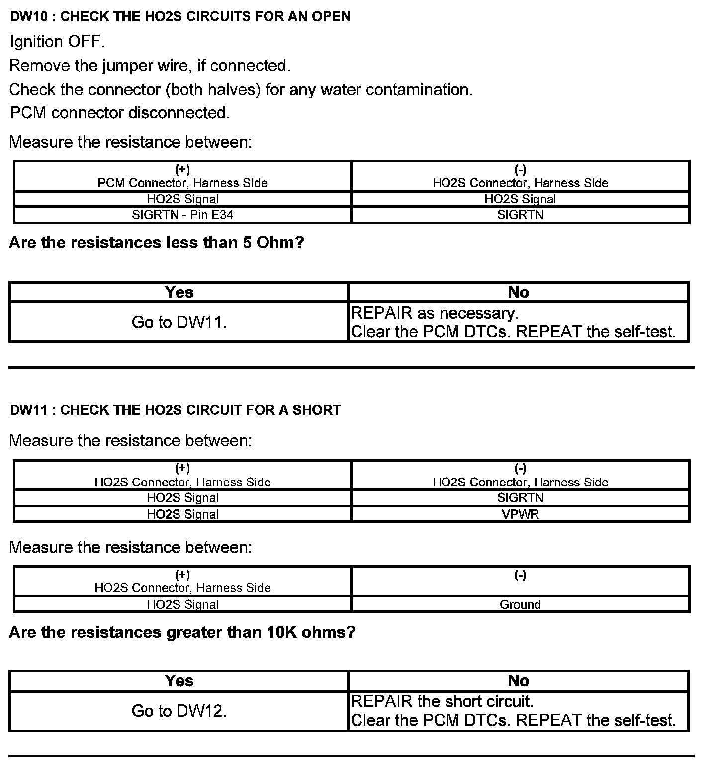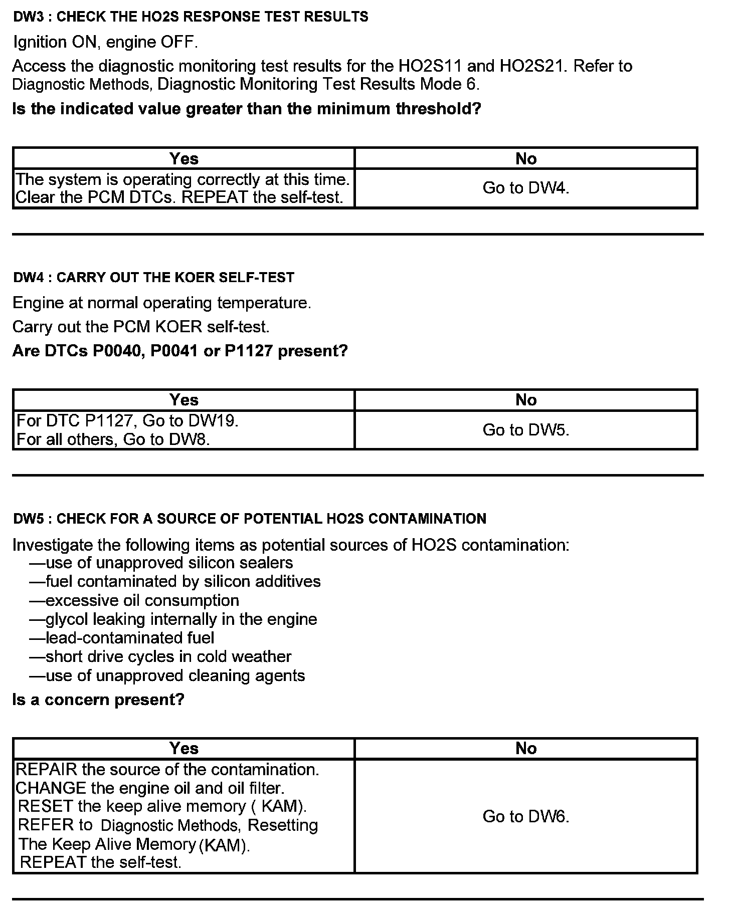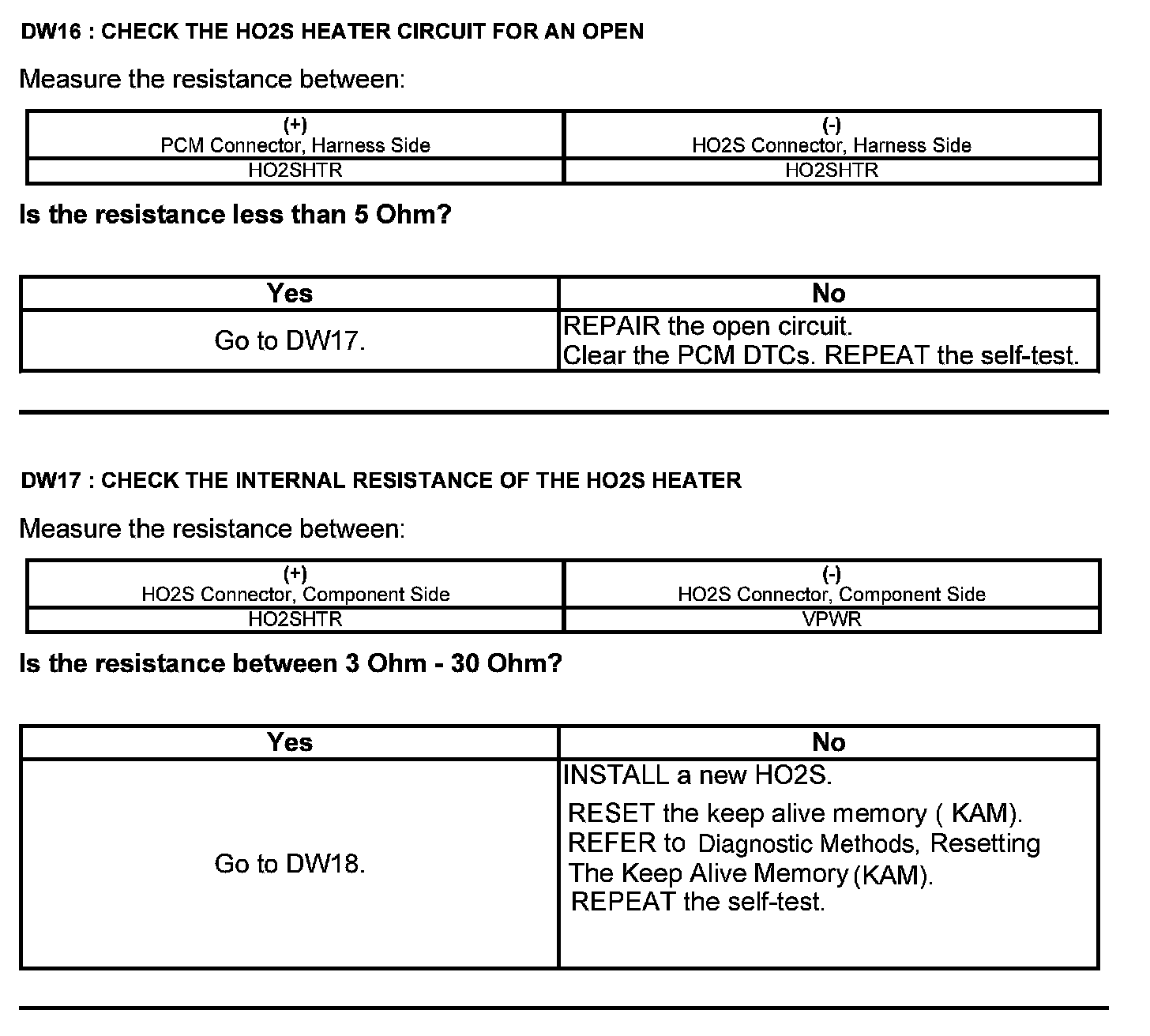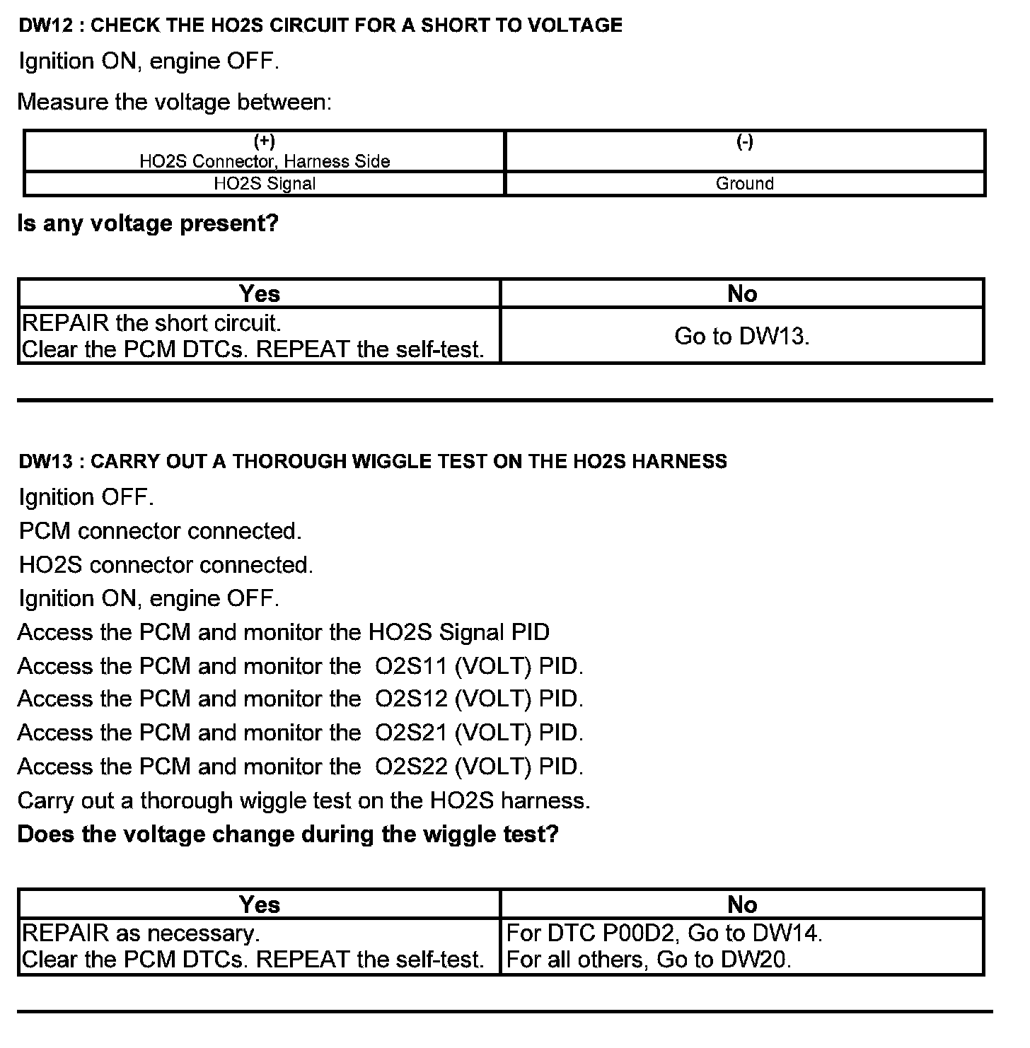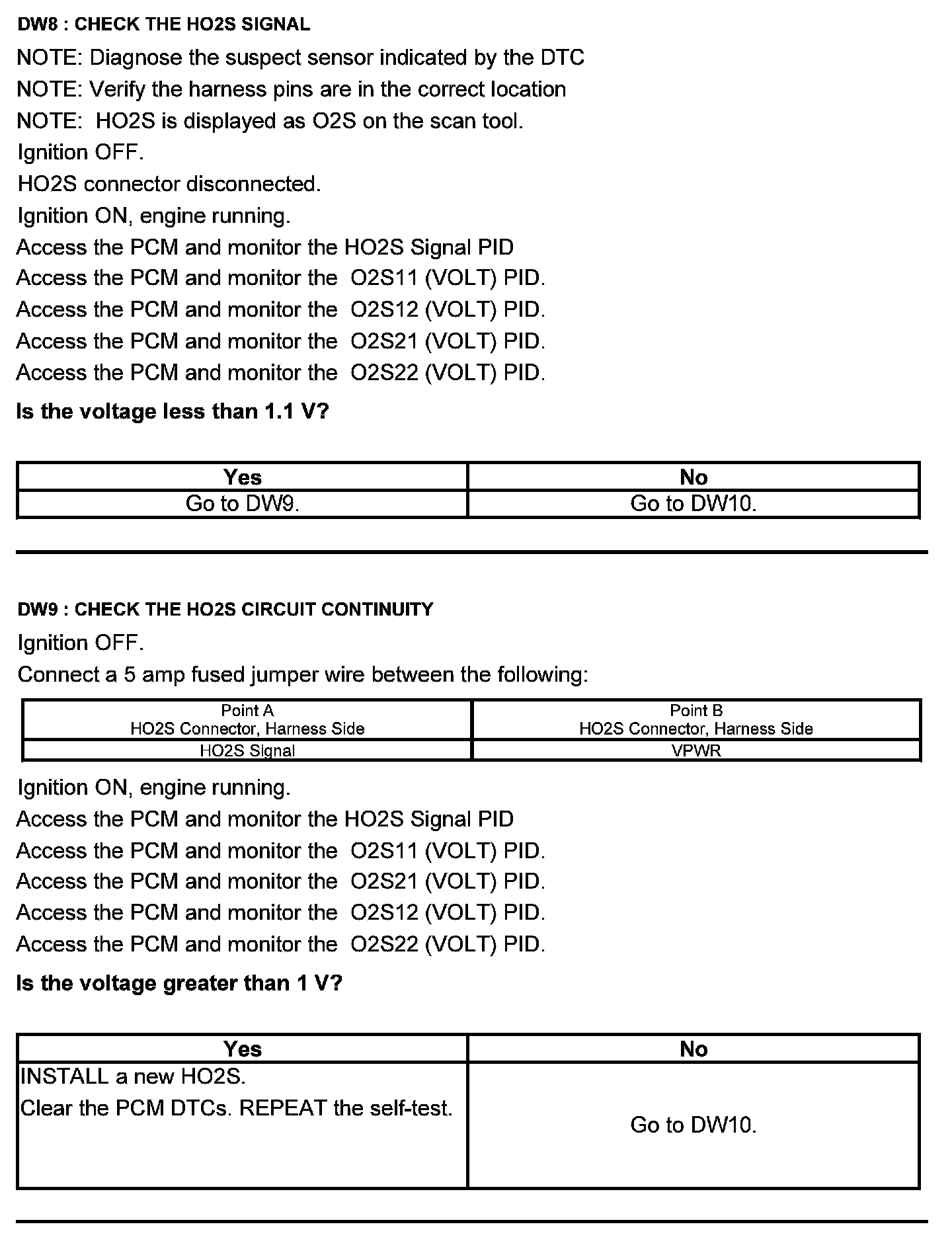 Test DW: Heated Oxygen Sensor (HO2S)