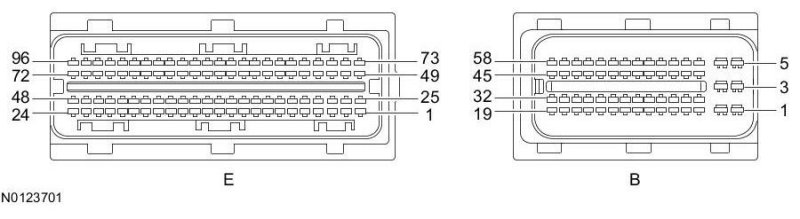 Powertrain Control Module (PCM) Connector - For PCM connector views or reference values, refer to Reference Values.