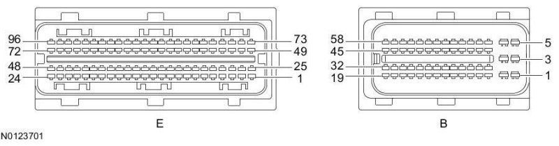 Powertrain Control Module (PCM) Connector - For PCM connector views or reference values, refer to Reference Values.