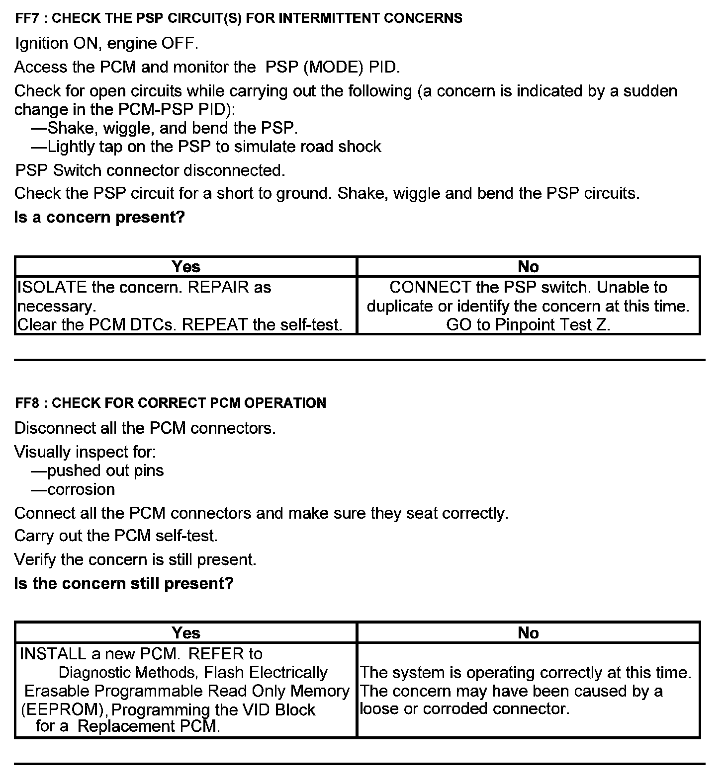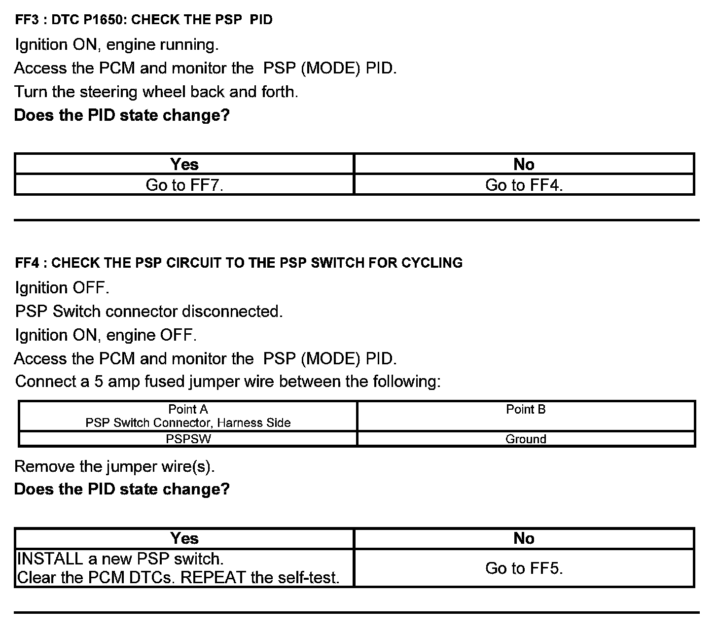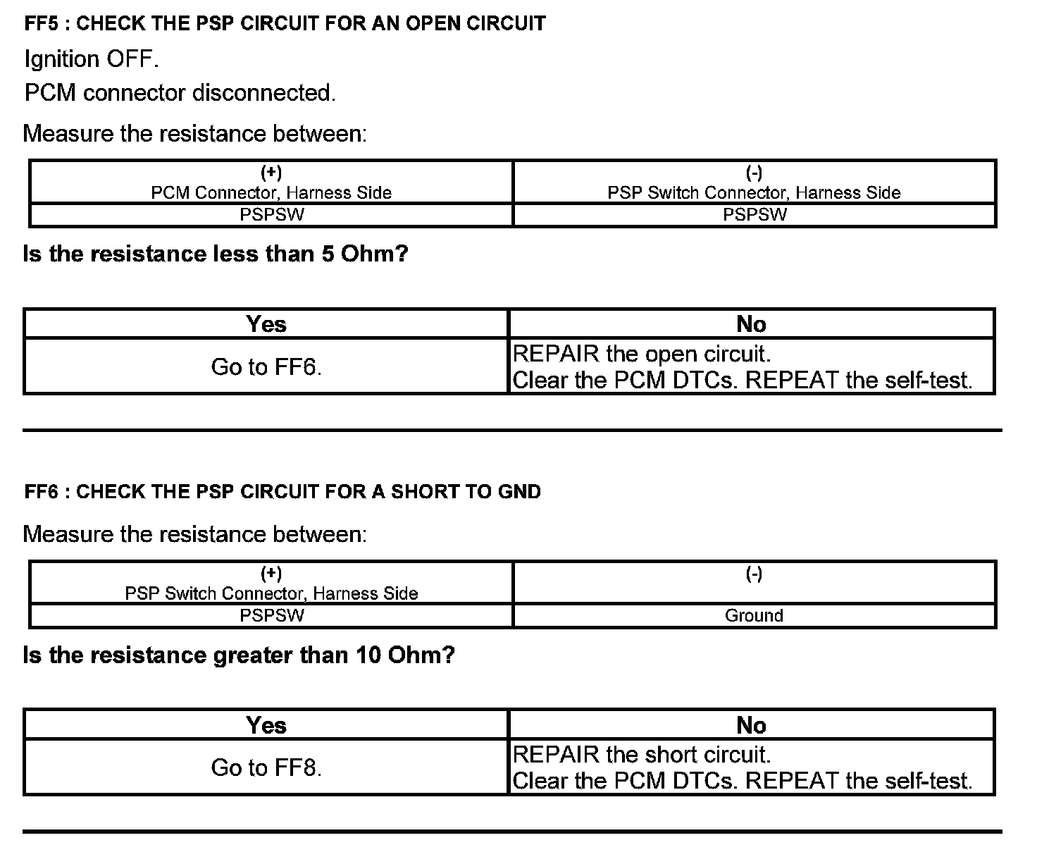 Test FF: Power Steering Pressure (PSP) Switch