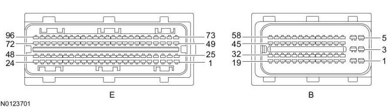 Powertrain Control Module (PCM) Connector - For PCM connector views or reference values, refer to Reference Values.