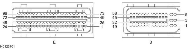 Powertrain Control Module (PCM) Connector - For PCM connector views or reference values, refer to Reference Values.