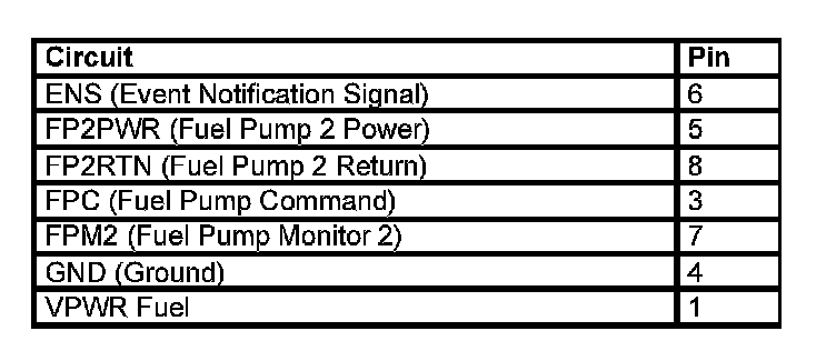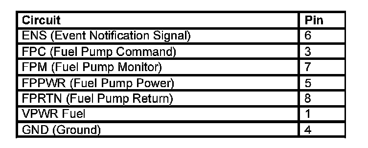 Fuel Pump Control Module Relay Connector - Refer to the Wiring Diagrams for schematic and connector information.