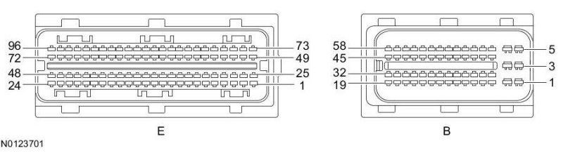 Powertrain Control Module (PCM) Connector - For PCM connector views or reference values, refer to Reference Values.