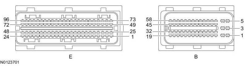 Powertrain Control Module (PCM) Connector - For PCM connector views or reference values, refer to Reference Values.