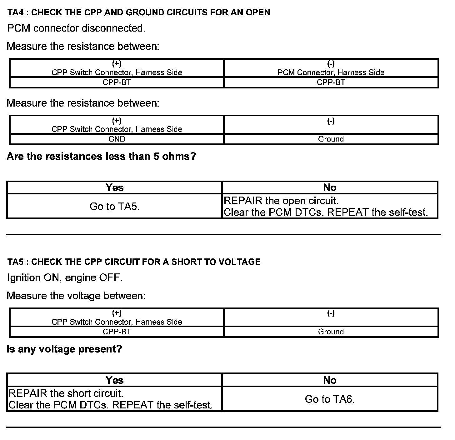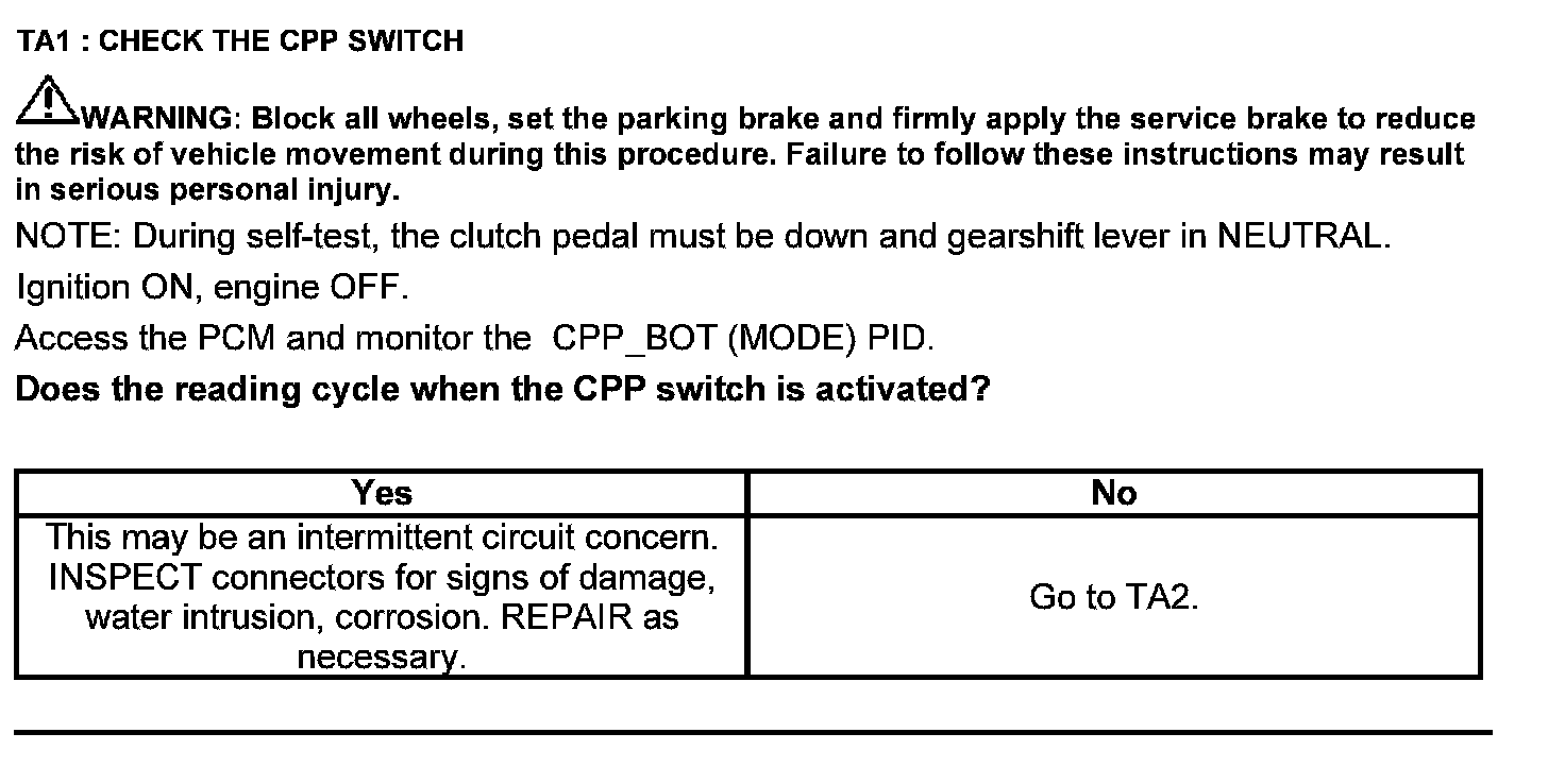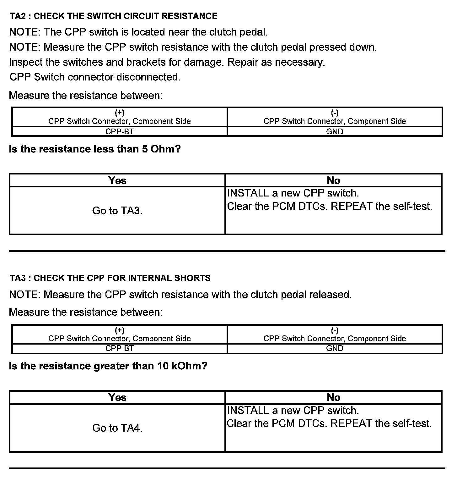 Test TA: Clutch Pedal Position (CPP#2) Switch