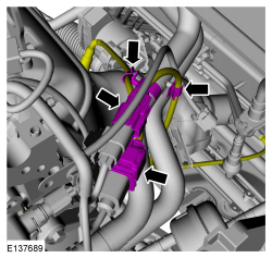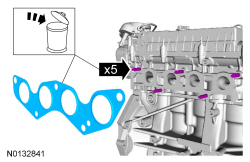 NOTICE: Do not use oil or grease-based lubricants on the isolators. These lubricants may cause deterioration of the rubber. This can lead to separation of the isolator from the exhaust hanger bracket during vehicle operation. Use only water-based lubricants on the isolators.